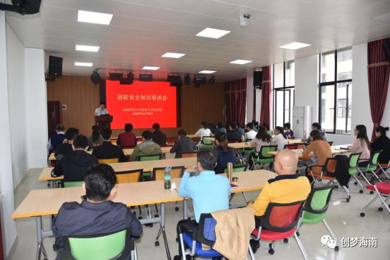 2018年12月20日上午,为大力宣传贯彻安全生产法律法规和方针政策,加强入驻企业安全生产宣传教育工作,提升园区员工的安全管理知识,海南师范大学国家科技园于A-203会议室开展了消防安全知识培训会。