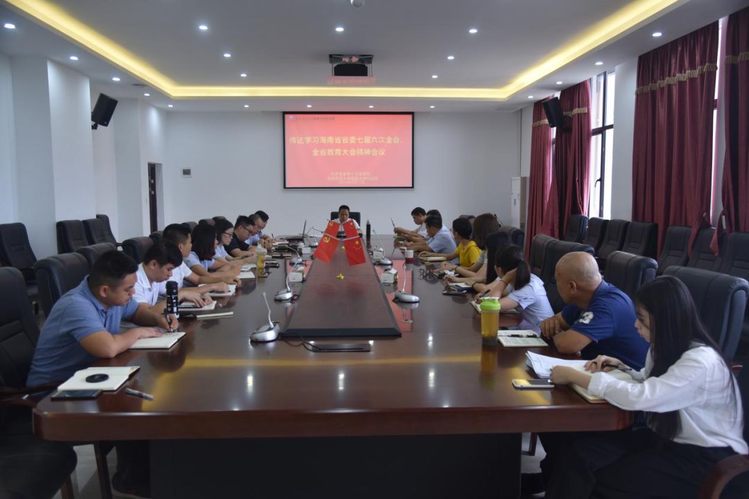 为深入贯彻省委七届六次全会、全国教育大会会议精神,海南师范大学国家大学科技园于4月17日下午召开全体干部职工学习会议,由科技园主任林明才组织传达学习相关会议精神。