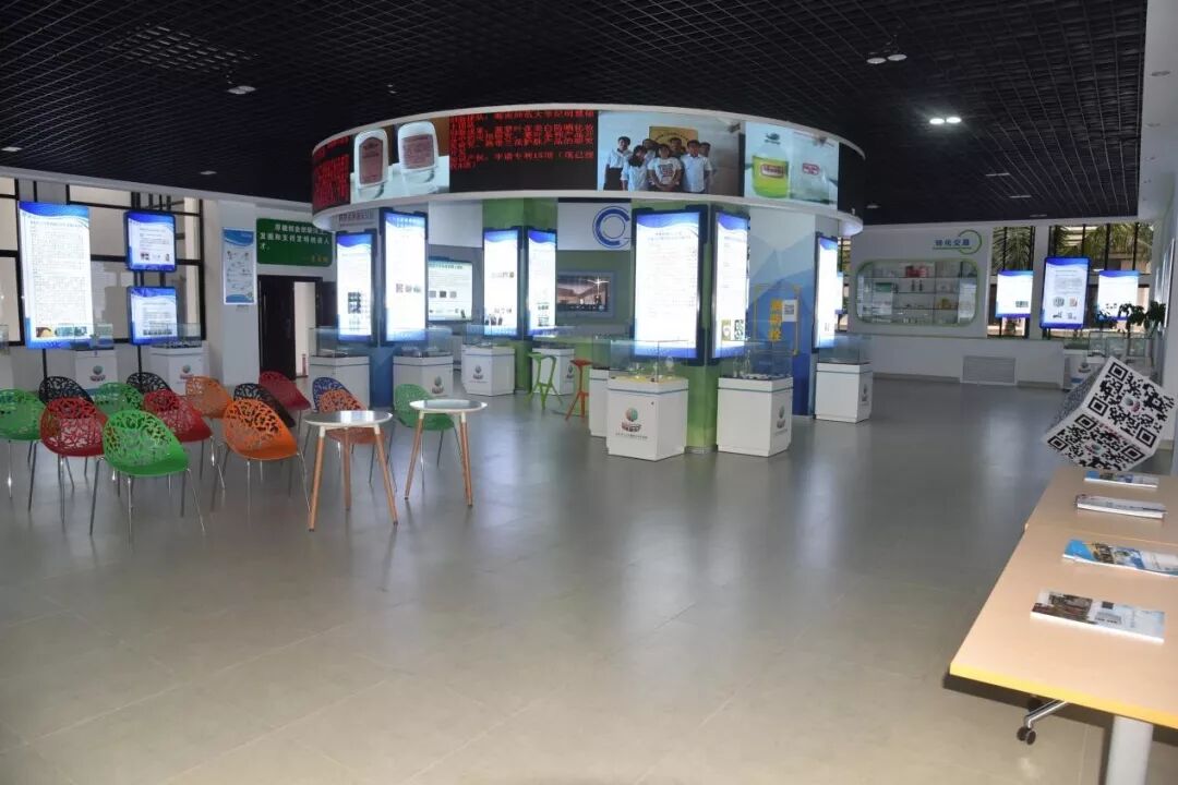 科技园坚持紧紧围绕“科研成果转化、创新创业人才培养、新兴产业培育、产学研合作”四大中心任务进行工作开展,截至目前已转化科研成果27项、帮助企业申报知识产权103项,展厅内搜集了来自周边各高校师生团队入驻园区后帮助进行转化的科研产品,如来自海南师范大学的海南省杰出人才林强教授团队的海藻肥、污水处理装置,来自海南师范大学、海南省杰出人才曲轶博士团队的激光半导体设备、来自青岛科技大学、“青年千人计划”朱彦武博士团队的额石墨烯预分散橡塑复合材料等。参观者在此可通过科技园打造的成果转化平台与开发团队进行交流合作。